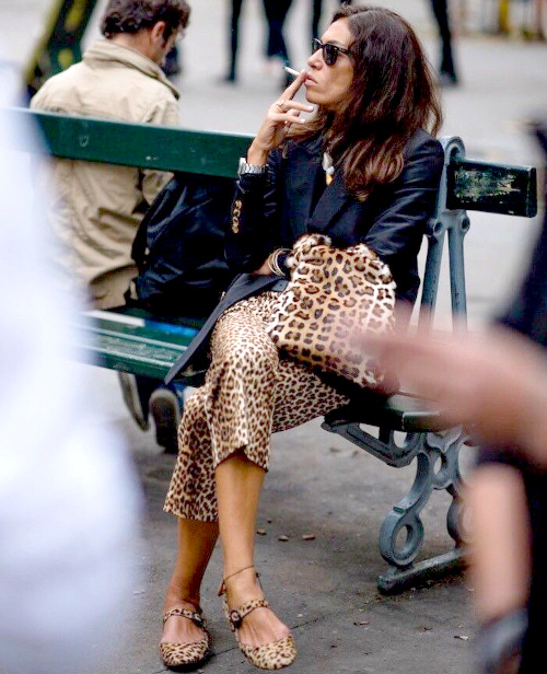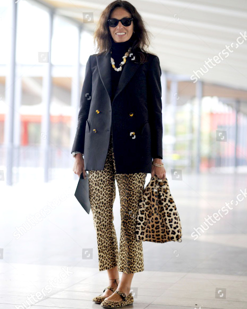 L'imprimé léopard arboré en journée plutôt qu'en soirée et décliné sur des pièces sages et non ultra glamour. Le collier de coquillages inséré au sein d'une tenue citadine (voir ici). Le mix entre tacheté félin et pièce tailoring (à l'instar d'un blazer Blazé Milano).