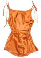 L'idée est ici de miser sur le contraste entre la sensualité du satin et le style working girl des fines rayures verticales. Le foulard se nouera en bandeau turban dans les cheveux. On s'offrira une pédicure afin d'arborer avec fierté des pieds veloutés.