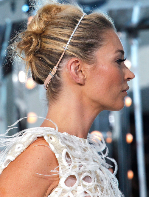 L'idée est ici de jouer sur le contraste entre l'ADN bohème du bracelet et le style boudoir du pyjama. On place les 3 ear cuffs sur la même oreille. On optera également ici pour un hair code à la Louis Vuitton époque Marc Jacobs. Le pyjama se portera à même la peau.