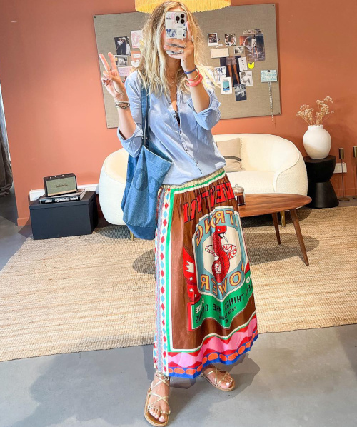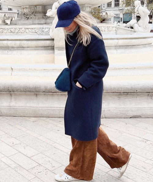 Offrir de la profondeur au duo bordeaux/bleu marine en mixant les textures et en y insérant un motif chaleureux (voir ici). Jeter son dévolu sur des pièces jouant subtilement avec les codes, à l'instar de cet ample combishort aux détails unisexe décliné en rose délavé (voir ici). Réhausser le combo kaki/bleu marine d'un zeste de jaune acide (voir ici). En été, faire la part belle au mix blanc/marron (voir ici). Investir dans des baskets colorées susceptibles de relever n'importe quel pantalon un brin sage (voir ici). Casser le côté casual de la salopette en jean en y glissant une blouse à col volanté, tout en évitant le premier degré romantique en optant pour un modèle à rayures masculines (voir ici). Intercaler un gilet sans manches joyeusement velu entre son sweat à capuche et son blazer en drap de laine (voir ici). Apaiser les froufrous en les choisissant ornant un tissu de facture masculine (voir ici). Associer combi de garagiste bien coupée et accessoires girly/bohèmes (voir ici). Laisser dépasser d'un jean large la pointe de souliers rose fluo (voir ici). Associer jean clair et velours côtelé bleu marine (voir ici). Toujours privilégier les matières confortables (voir ici). Travailler ses looks casual dans des textures upgradant la silhouette : ici un pull gris en cachemire à la place d'un sweat gris et un pantalon large en velours à la place d'un jean brut large (voir ici). Accompagner ses pantalons larges marron d'un manteau droit 3/4 bleu marine (voir ici). Oser marier patchwork et duo de pièces aux coloris forts (voir ici). Allier confort et allure en misant régulièrement sur le trio pantalon large masculin/pull en cachemire un peu ample grand col V/baskets (voir ici, ici et là). Associer sequins et toile de jean déchirée (voir ici). Twister le duo trench camel/jean 7/8 en chaussant des mocassins folks (voir ici). Faire confiance au rose fluo pour sublimer son teint (voir ici). Réhausser ses chemises masculines via un ample chèche ocre (voir ici). Ne jamais hésiter à adjoindre un accessoire folk au tandem jean large/tee-shirt imprimé (voir ici). Chiciser le mix tee-shirt universitaire/short en jean destroy en lui mariant un gilet légèrement long, col rond, de bonne facture et arborant une teinte un peu plus intense que celle du tee-shirt (voir ici).