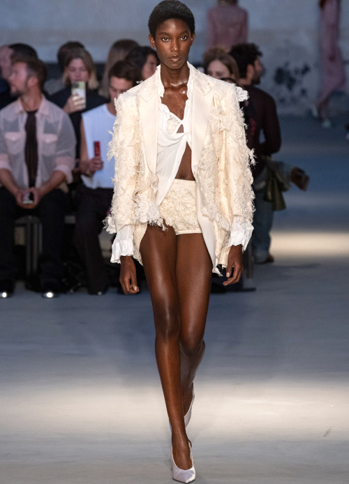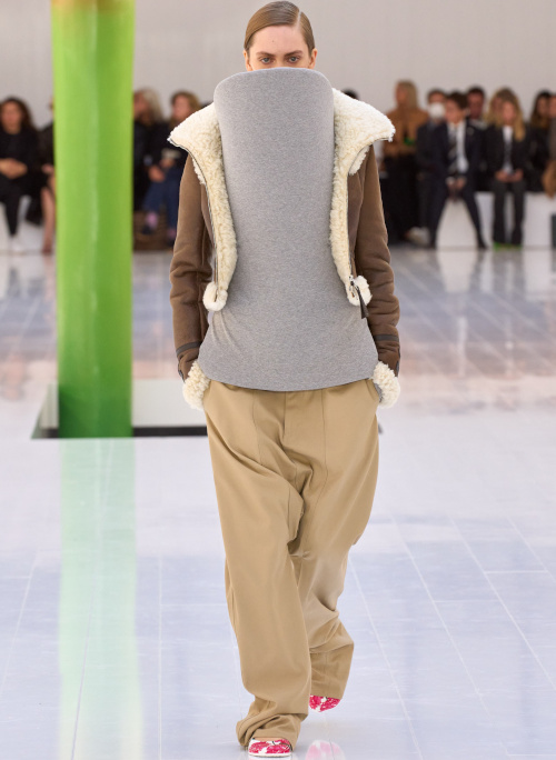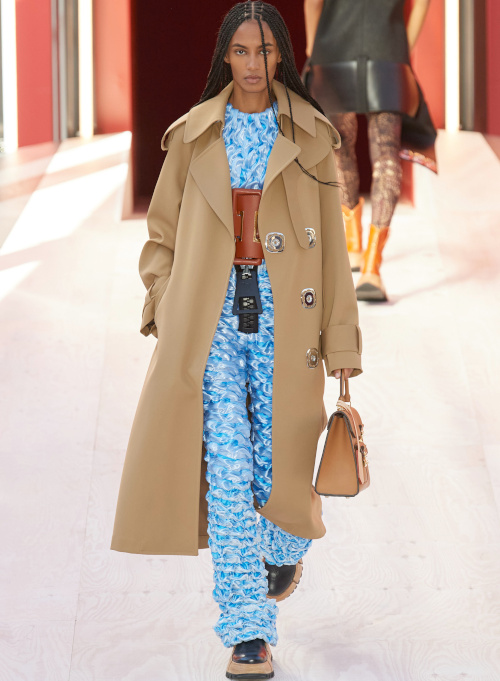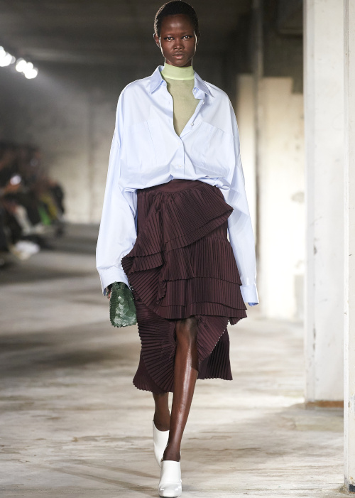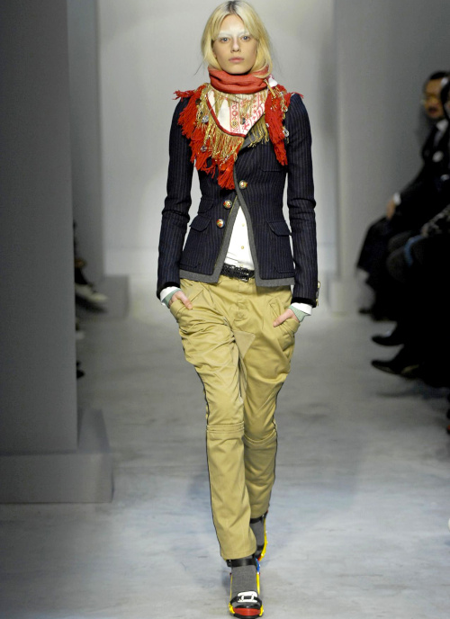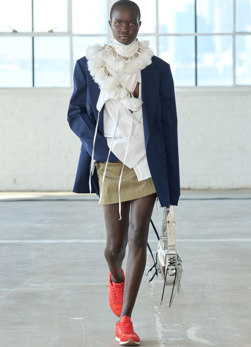 Rien de tel pour bousculer une tenue construite autour de teintes classiques (ou casual) que de décliner ces dernières sur une ou deux pièces contredisant leur nature sans histoire. Respectant à la lettre cette règle prisée depuis longtemps par des créateurs tels que Nicolas Ghesquière (Balenciaga A/H 2007), Joseph Altuzarra livre ainsi une silhouette gommant la "casualness" de ses teintes en associant pampilles folk et blouse déstructurée (sans parler de l'ajout de couleur des baskets qui achève de booster l'ensemble).