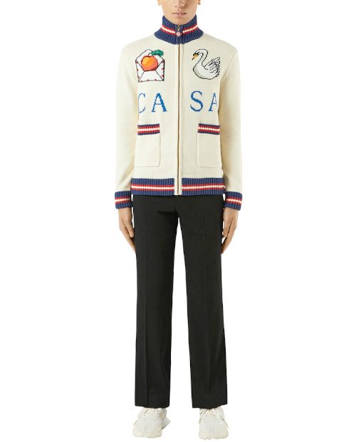 Le reste me semble être des énièmes détournements de vêtement "refèrentiel" , le pull irlandais mais décoré , le sweat et les paillettes mais dans un couleur "sale" et terne , la veste de peintre et son pantalon façon APC mais multicolor pas chic , du mou , du pratique .