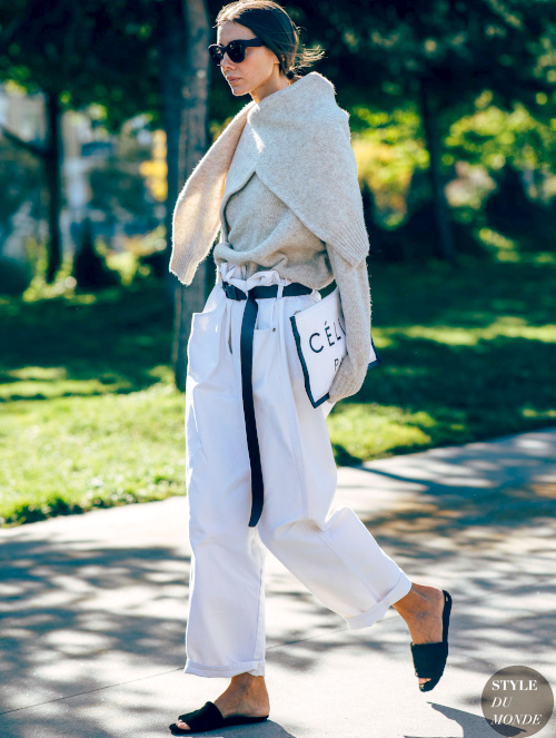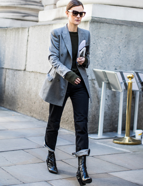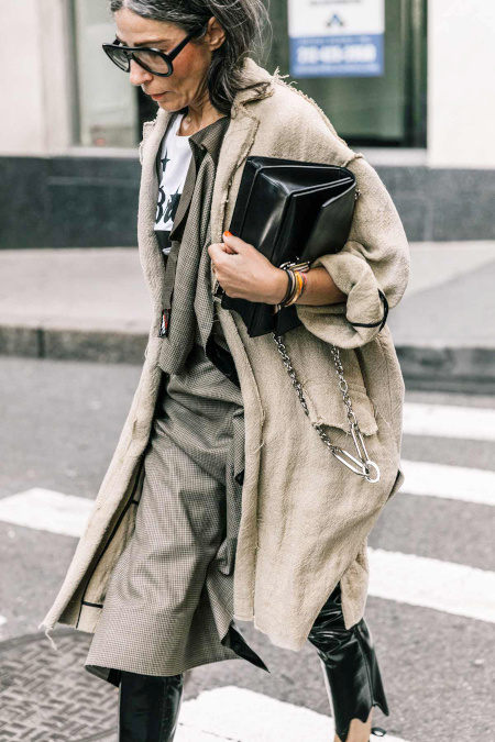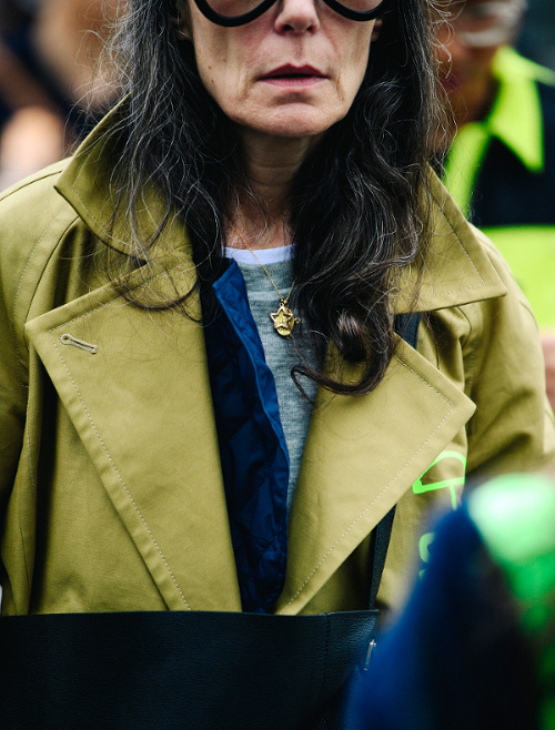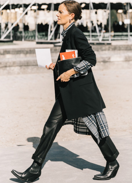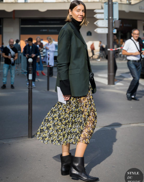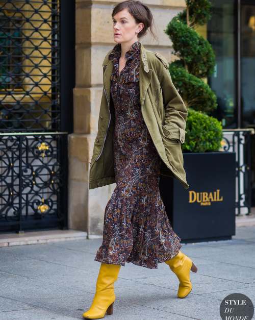 Dénicher une paire de bottes colorées à la fois élégante et facile à vivre, qui boostera les combos de teintes sages (Jo Ellison). Marier marron, gris et blanc (Jo Ellison - voir ici et là). Déjouer le sérieux casual du trio blazer/pull col rond/jean en optant pour une paire de boots ayant de la personnalité (Jo Ellison). Glisser sous un blazer une robe chemise entièrement déboutonnée (Jo Ellison). Décliner les imprimés animaliers sur des pièces classiques et dans une teinte sortant de l'ordinaire (Julia Sarr-Jamois). Associer imprimé camouflage et rayures verticales (Julia Sarr-Jamois). Télescoper fausse fourrure fantaisie et haut type marinière (Julia Sarr-Jamois). Choisir son pardessus dans une teinte permettant d'injecter instantanément du caractère à la silhouette (Julia Sarr-Jamois). Investir dans des pull-overs dont la couleur, la densité et la texture en font des pièces fortes à part entière pouvant facilement dérider un jean (Julia Sarr-Jamois - voir ici, ici et là). Dédramatiser ses mini-jupes en les arborant avec des baskets massives (Julia Sarr-Jamois). Oser télescoper marinière et jupe imprimée, le résultat graphique pouvant se révéler aussi surprenant que réussi (Julia Sarr-Jamois). Réchauffer ses robes courtes et minimalistes au creux d'un K-Way coloré (Julia Sarr-Jamois). Associer trench et rayures marinières (Christine Centenera). Laisser dégouliner un long pan de ceinture sur un pantalon large taille haute et court sur la cheville (Julie Pelipas). Mixer gris, orange et bleu azur (Julie Pelipas). Faire respirer un look couvrant via une pièce du milieu coupée dans une matière diaphane (Julie Pelipas). Réchauffer une robe en dentelle via un blazer bleu marine porté croisé et ceinturé taille haute (Julie Pelipas). Faire entrer en résonance cuir et textiles naturels (Véronique Tristram). Associer vert lichen et bleu cobalt (Véronique Tristram). Réchauffer ses jupes folks d'un pull douillet (Lucinda Chambers). Réveiller une superposition de pièces de coupe tee-shirt au contact d'un épais collier doré (Lucinda Chambers). Ceinturer ses robes en mousseline d'une ceinture en gros grain (Lucinda Chambers). Porter les imprimés esprit wax de manière classique (Lucinda Chambers, Franca Sozzani). Chiciser le pantalon de jogging en lui mariant un long pull col roulé bleu marine et une paire de mules minimalistes (Sarah Harris). Croire en la force des classiques (Sarah Harris). Associer jean court sur la cheville et escarpins noirs de très bonne facture (Sarah Harris). Faire la part belle aux chemises improbables (Taylor Tomasi Hill). Mixer les rayures en conservant une certaine harmonie de couleurs (Taylor Tomasi Hill). Investir dans des robes estivales hautes en couleurs que l'on apaisera en portant une casquette de baseball (Taylor Tomasi Hill).