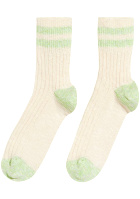 Ajouter des chaussettes bleu ciel à faire froncer sur la cheville. Glisser le tee-shirt sur le devant de la jupe. Porter la veste kaki ouverte. Nouer le foulard la pointe devant. On pourra également opter pour ces baskets.