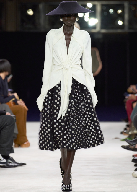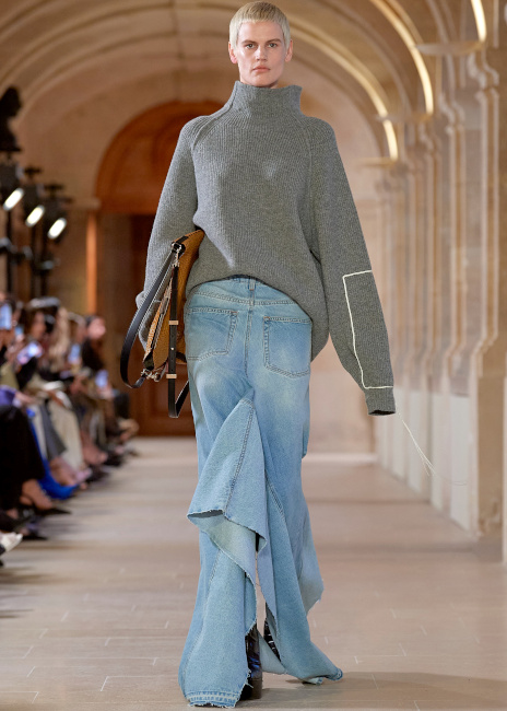On se surprend à trouver chez Balmain des silhouettes moins caricaturales que d'ordinaire (voir ici et là). Gabriela Hearst revendique avoir imaginé une collection pour ses clientes et non pour Instagram. Elle délaisse ainsi les fantaisies potentiellement virales au profit d'un vestiaire à la fois cosy et féminin (voir ici, ici et là). Dommage que l'on flirte ici souvent avec l'ennui… Chez Dior, on savoure la ligne intemporelle et infiniment élégante des silhouettes New Look du show. Qu'elles soient fleuries, longueur midi ou mi-mollet, les amples jupes de la collection célèbrent une féminité universelle qui, une fois patinée par la présence de sobres chemises monochromes, se fait infiniment désirable (voir ici, ici et là). Avatar s'invite chez Acne (voir ici). La longue robe en jean est rarement une bonne idée… (Victoria Beckham) Les "filles Isabel Marant" (Jessica Stam, Natasha Poly, Caroline Trentini, Kasia Struss, Julia Nobis, Liya Kebede, Sasha Pivovarova…) ont une fois de plus répondu à l'appel de leur créatrice préférée.