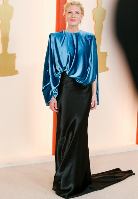 - Cate Blanchette : j'aime la couleur du haut et c'est tout. L'ensemble est assez austère, pas adapté aux Oscars.