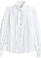Glisser la chemise sous le pull et faire dépasser col et poignets. Rentrer le bas du pull sur le devant du pantalon. Épingler la broche au niveau du coeur.