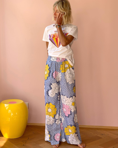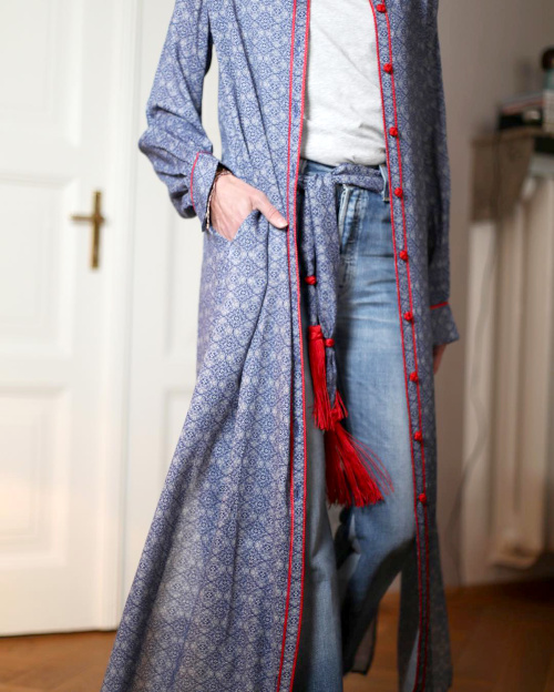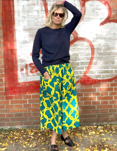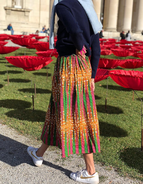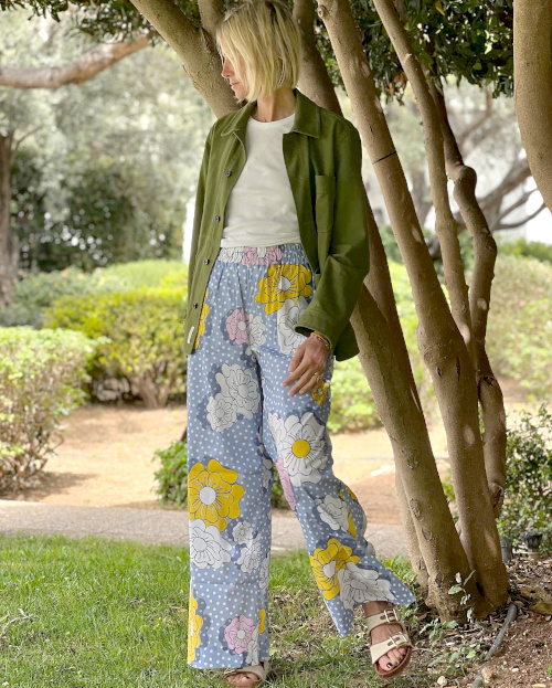 Oser le confort fantaisie en mariant pantalon souple fleuri et tee-shirt graphique coloré (voir ici). Mixer les rayures verticales arborant différentes nuances de la même teinte (voir ici). Réveiller un ensemble casual/sportswear en y insérant une pièce presque rustique (voir ici). Marier chemise à fines rayures, ample jupe midi en wax et Nike Cortez (voir ici). Porter un long caftan déboutonné en guise de trench sur le duo jean droit/tee-shirt col rond (voir ici). Associer longue robe fleurie et sac vintage iconique (voir ici).