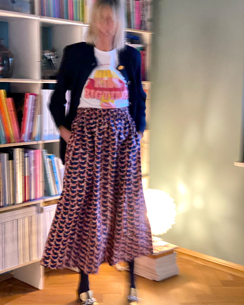 Je voulais parler de son style tellement à part mais je vois que tous les commentaires vont dans ce sens ,j'adore ! Surtout le wax ,mais où trouve t elle tous ces vêtements avec ces si beaux imprimés ?