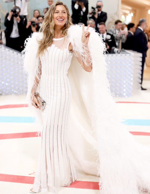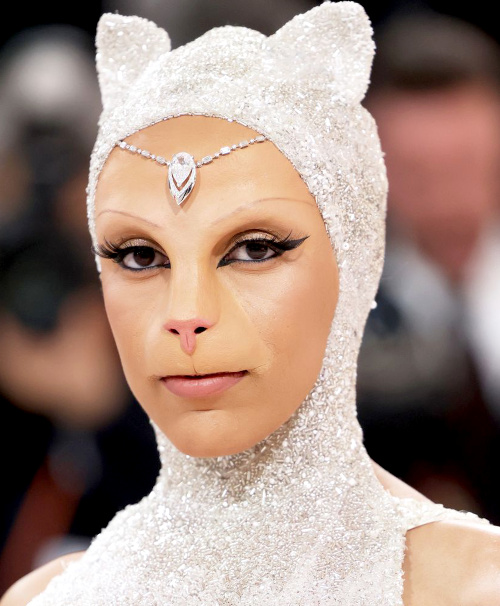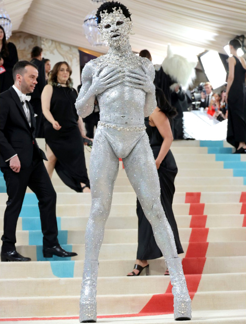Si la robe Fendi de Lila Moss s'avéra plus bien plus intéressante que celle de sa mère, le sourire de cette dernière lui donna indéniablement l'avantage. Créée en hommage à Karl Lagerfeld et aux bijoux Chanel, la robe Schiaparelli de Kim Kardashian se fit remarquer par sa dimension "glamour DIY", mais aussi par sa faculté à contrarier la marche de la business woman (voir ici et là). Qui de Dua Lipa (2023) ou de Claudia Schiffer (1995) porte le mieux le corset esprit princesse bucolique ? Telle est la question qui animera sûrement bon nombre de dîners parisiens (ou pas). Gigi Hadid, Amber Valletta et Yung Miami célébrèrent avec plus ou moins de panache la tendance "nue, mais habillée, mais nue quand même" du moment. Tout l'enjeu de cette cérémonie dédiée à feu Karl Lagerfeld était d'éviter de choisir une toilette au sein de la griffe éponyme du créateur. Dommage que Carla Bruni et Michelle Yeoh ne l'aient pas compris… Si les fleurs de la robe de mariée Valentino de Rihanna évoquent les fameux camélias de la rue Cambon, son immense traine immaculée rappelle quant à elle les bâches utilisées par Dexter Morgan lors de ses activités extra professionnelles… (voir ici et là) Semblant ajouté à la dernière minute afin de coller au thème de la soirée, le collier de perles de Brooklyn Beckham achève de rendre maladroite la dégaine du jeune homme (voir ici). Le dos nu n'est pas forcément un "game changer" universel… (voir ici) Cardi B nous donna l'occasion d'entrevoir à quoi pourrait ressembler la fusion entre un être humain et le sac Classic Flap Camélia de Chanel (voir ici). Avec ses manches longuissimes et ses plateformes vertigineuses, Kendall Jenner avait tout d'une héroïne de manga pour adultes (Marc Jacobs). Nouvelle égérie Versace, Anna Hathaway continue d'égratigner son image de beauté lisse et gentiment froide (voir ici). Coutumière des morphings et autres effets spéciaux troublants (voir ici), Doja Cat et son museau de chaton se sont littéralement fait voler la vedette par le premier degré jouissif d'un Jared Leto plus facétieux que jamais (voir ici et là). Quant à l'hommage rendu également à Choupette par Lil Nas X, on cherche encore le clin d'oeil à l'héritière de Karl dans le mix string/peinture argentée/plateformes… (voir ici et là) À moins de se glisser dans une toilette de feu Alexander McQueen, miser sur le style gothique est rarement une bonne idée, tant le résultat apparaît généralement triste et sans saveur… (Billie Eilish en Simone Rocha) La capacité de Gisèle Bündchen à transcender totalement une robe fourreau somme toute assez banale nous rappelle pourquoi celle-ci est toujours à 42 ans la top modèle la mieux payée au monde (voir ici). Bien décidée à marquer une différence nette entre le tapis rouge du Met et celui des Bafta 2008 (et ce en dépit d'arborer la même robe Chanel), Marion Cotillard n'a pas hésité à afficher une coupe de cheveux digne d'une version sous acide du 5e élément… (voir ici) Entre mitaines en cuir, lunettes aviateur, chapelets et multiples bagues, Cara Delevingne nous prouve qu'elle connaît sur le bout des doigts ses classiques lagerfeldiens (voir ici). En choisissant de porter la même robe Chanel que celle qu'elle arborait sur la publicité pour le parfum Chanel N°5 de 2004, l'inoxydable Nicole Kidman effectua un brillant coup de billard à trois bandes en rendant certes hommage à la maison parisienne, mais aussi et surtout à elle-même… Les décolletés remontant en pointe au niveau du pli entre la poitrine et l'aisselle devraient être définitivement rayés du cerveau des modélistes… (Mindy Kaling) Difficile de savoir qui, de Marc Jacobs ou de Paris Hilton, donne le plus envie de boycotter à jamais le fond de teint… (voir ici) Sublimer le style "Karl Lagerfeld" n'est pas chose aisée, tant les créations du propriétaire de Choupette peuvent parfois manquer de fluidité esthétique… (Emily Blunt en Michael Kors, Isabelle Boemeke) Miser sur un ton sur ton robe/carnation n'est pas le choix le plus judicieux (Alexandra Daddario, Amanda Seyfried). Face au costume de Lil Nas X , beaucoup ont dû regretter de ne pas avoir - à l'instar d'Erykah Badu - déniché chez Marni un accessoire floutant généreusement la vue… On salue la perspicacité de Jeremy Pope, qui opta pour une tenue susceptible d'être aperçue depuis la nouvelle demeure nuageuse du Kaiser (voir ici). Entre une belle idée (ici le revers ailé) et sa réalisation, on perd parfois en poésie ce que l'on gagne en réalité bancale (Devon Aoki en Jeremy Scott). Guillaume Henry fit preuve d'originalité en s'inspirant non pas de la période Chanel de Karl, mais plutôt de son passage chez Jean Patou. Dommage que la robe portée par Allison Williams se soit révélée au final moins charmante que celle datant de 1959. La cote du napperon a drastiquement augmenté sur eBay suite à l'apparition de Camila Morrone (ou pas). Accorder son make up à la couleur de sa robe - et ce d'autant plus lorsque celle-ci se trouve être de teinte lilas - est à éviter soigneusement (Micaela Diamond). Le gimmick consistant à perturber subtilement la ligne d'une robe moulante via une ceinture asymétrique ton sur ton est à retenir (Imaan Hammam). On espère que Kristen Stewart se remet doucement de son indigestion alimentaire, de sa rupture avec son perroquet, de la lecture du roman de Steinbeck "Des souris et des hommes" ou du visionnage de Légendes d'automne (ou de toute autre raison pouvant expliquer sa mine taciturne…). Kerry Washington réussit l'exploit de rendre chic le port du soutien-gorge bandeau (voir ici). La créatrice britannique Róisín Pierce revendique le choix de ne pas faire de croquis préliminaires et de construire ses robes au fil des ajouts de matières. Un processus créatif certes intéressant, mais qui ne s'en solde pas moins ici par un échec (Alexa Chung). Irina