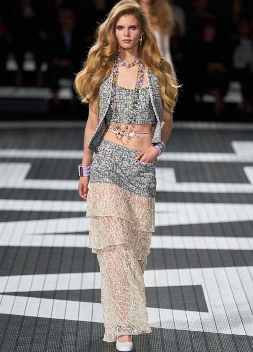 Alors je trouve bcp de pièces ratées mais au moins le vocabulaire de la marque est un peu renouvelé pcq sous Lagerfeld, il y avait 3 couleurs et des camélias, au bout de presque 40 ans, ça devenait lassant.