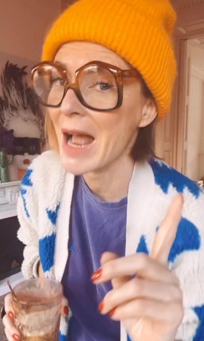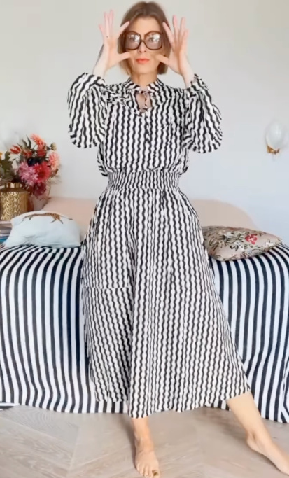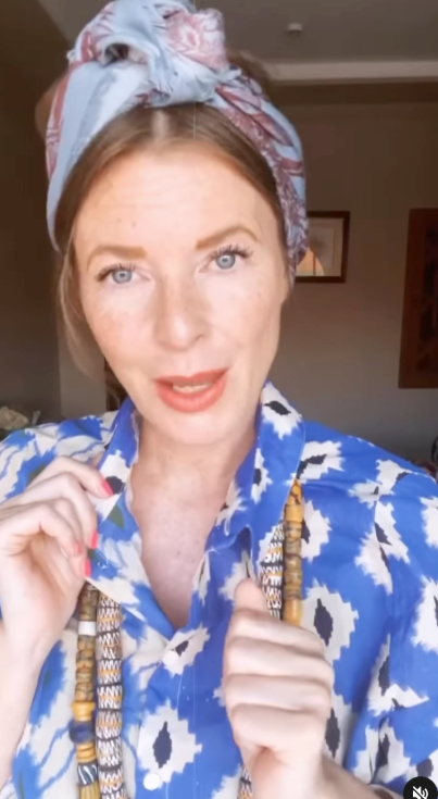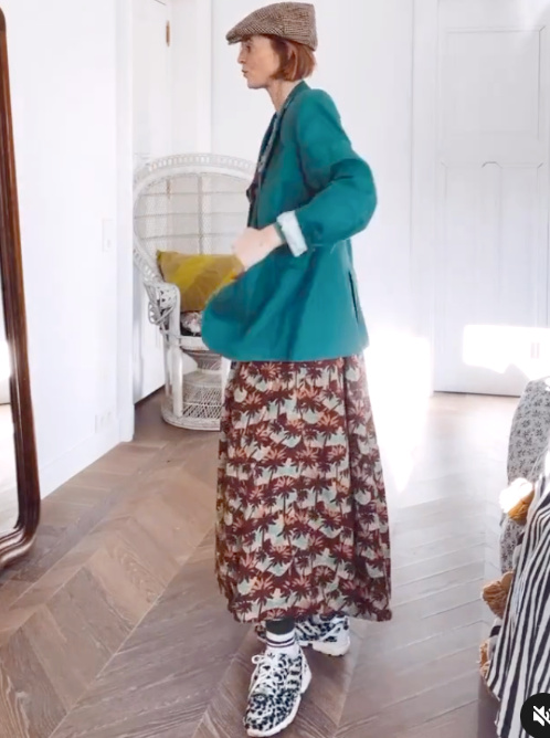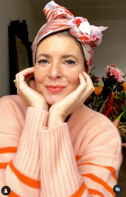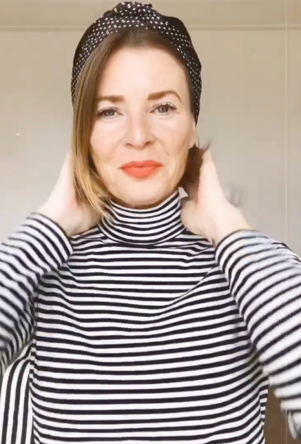 Elle me fait reconsidérer le foulard turban dans les cheveux malgré l'effondrement de ma jaw line ( mot so trendy chez la silver génération 😉)