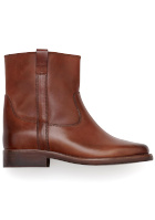 Glisser le tee-shirt sur le devant du short ou le nouer sur le côté. Ajouter à l'envi (et en fonction de la météo) une paire de guêtres blanc cassé à faire froncer à la sortie des boots. Porter le sac au travers du buste. Remplacer si besoin le blazer par un modèle plus automnal, l'essentiel étant que ce dernier soit dans une teinte marron.