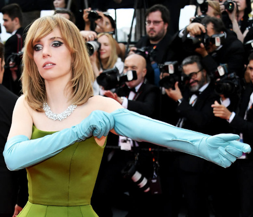 Tendance forte de ce festival, le port de gants conféra à celles qui s'y essayèrent tour à tour une dégaine de Californienne obsédée par la protection de la jeunesse de ses mains (voir ici), le look d'un serial killer consciencieux (voir ici) ou encore le style d'une ménagère s'essayant au look "Mad Men"… (voir ici) Le désir d'Irina Shayk de prouver à la terre entière que la maternité n'a en rien altérée la finesse de son corps est une chose, qu'elle elle fasse preuve pour cela d'un premier degré navrant en est une autre... (voir ici et là) Faussement sobres, les longues robes droites de Virginie Efira font mouche (voir ici et là). Alors que la plupart de ses collègues choisirent de traiter la tendance lingerie apparente de façon assez littérale, Elsa Hosk insuffla un zeste d'espièglerie au concept en optant pour l'une des facétieuses créations du duo Viktor & Rolf (voir ici). Le décolleté inversé est - et restera - une hérésie esthétique (Heidi Klum en robe Zuhair Murad). Face aux manches effet tulipes flétries de la robe de Liya Kebede, l'envie d'arroser généreusement celles-ci se fait quasiment irrépressible (voir ici). Porté en en total look, le marron mordoré manque cruellement de fraîcheur (Andie MacDowell en Saint Laurent). À trop chercher la complication, on perd souvent en évidence stylistique… (Kate Beckinsale) Quand l'abat-jour tente une reconversion fashion… (Stacy Martin en robe Louis Vuitton) Il suffit malheureusement d'une taille un brin trop haute et d'une longueur de jambe mal réglée pour ruiner une bonne idée (Leïla Bekhti). Un pantalon plus large et coupé dans un tissu plus lourd aurait pu faire passer du correct au sublime l'audacieux duo arboré par Jane Fonda (voir ici). Il semble que quelqu'un a encore laissé les enfants jouer avec les allumettes… (Rawdah Mohamed en Robert Wun) Gigi Hadid évoque ici de manière troublante la période Mugler de Jerry Hall (Zac Posen).