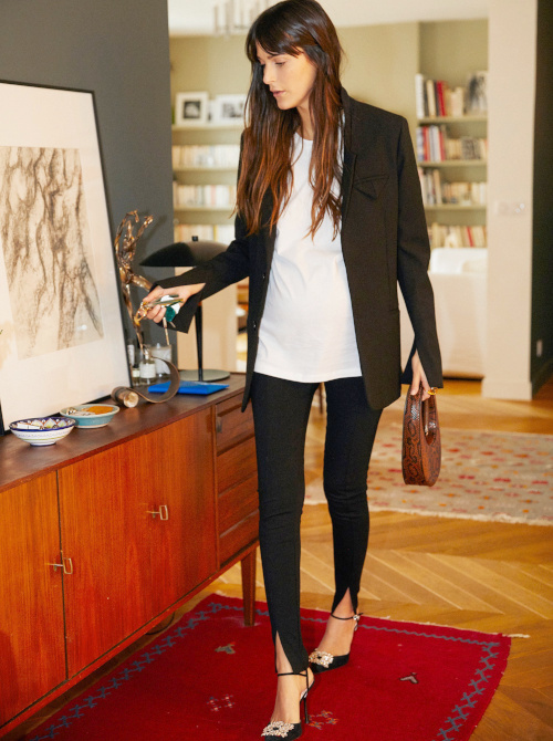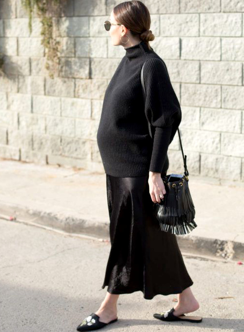 Ceinturer ses robes sous la poitrine de manière à structurer la silhouette (voir ici). Aller le plus souvent possible vers le moulant (voir ici, ici et là). Faire du combo chemise/short/baskets l'un des basiques de sa garde-robe "future maman" (voir ici). Ne pas hésiter à transformer les tee-shirts de son homme en nuisette casual (voir ici). Opter de temps à autre pour une toilette immaculée évoquant la puissance sereine de la maternité (voir ici). Nouer tee-shirts et robe tee-shirts sur le côté afin de souligner l'arrondi du ventre (voir ici). Aller vers des imprimés inattendus (voir ici). Entre le moment où l'on ne rentre plus dans ses vêtements d'avant et celui où le baby bump sera suffisamment volumineux pour créer de sublimes looks de grossesse, accepter de vivre en maillot de bain une pièce (ou pas) (voir ici). Superposer robe noire ultra moulante et chemise graphique nouée juste sous la poitrine (voir ici). Apporter un brin de structure aux tee-shirts, combi-cyclistes et autres mini-robes bodycon en leur associant une chemise portée ouverte (voir ici, ici et là). Porter ses jeans le plus longtemps possible en assumant de ne plus pouvoir les boutonner (voir ici et là). Faire du trench l'allié de toutes ses tenues moulantes ou fluides (voir ici et là). Jouer sur les contrastes en optant pour un top couvrant sur le devant et aéré dans le dos (voir ici). Nouer son tee-shirt au dessus de son ventre (voir ici, ici et là). Casser le potentiel premier degré des pièces en lin en leur associant une paire de baskets (voir ici). Délaisser son iPhone pour se consacrer à de nouveaux passe-temps (voir ici). Laisser libre l'une des bretelles de sa salopette (voir ici). Affûter ses robes longueur genou au contact d'une paire d'élégants escarpins (à réserver à celles possédant une bonne circulation sanguine) (voir ici). Penser à accessoiriser ses robes les plus sobres (voir ici et là). Dénicher une jupe droite midi englobant parfaitement le ventre et la twister en la mariant à un tee-shirt (voir ici). "Upgrader" ses tenues les plus confortables avec un accessoire ne correspondant pas au style de la tenue (voir ici et là). Faire de sa grossesse un joyeux moment d'expérimentation stylistique (voir ici et là). Ne pas sous-estimer la dimension "adaptable" du paréo (voir ici). Trouver enfin une utilité au pull cape sans manches, qui permettra de sortir de l'anonymat le duo tee-shirt/jupe mi-longue (voir ici). Délaisser de temps à autre les pantalons de grossesse au profit d'un jean choisi en taille XXXL (voir ici). S'autoriser le total look maille en privilégiant les pièces de caractère (voir ici et là). Éviter d'associer long pull et jupe longue, l'ensemble ayant tendance à tasser la silhouette (voir ici). Marier top cropped et chemise masculine (voir ici). Porter ses gilets à même la peau et déboutonnés sur le bas (voir ici et là). Remplacer au sein de ses costumes la chemise blanche par un tee-shirt blanc plus confortable (voir ici). Réchauffer ses robes les plus "fleur bleue" au creux d'un blazer masculin (voir ici).