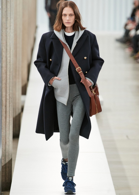 Dans cette silhouette, c'est avant tout la combinaison manteau/sweat à capuche qui suscite l'envie d'être reproduite et associée à divers bas, pouvant aller de la jupe crayon au jean slim, en passant par le pantalon large à pinces. On associera ainsi pardessus bleu marine (ou noir) et sweat gris ou encore pardessus chocolat et sweat camel.
