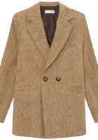 Porter le hoodie ouvert sous la veste. Laisser dépasser du blazer la capuche et les manches du sweat-shirt. Déboutonner légèrement le haut de la robe. Ajouter éventuellement une paire de hautes et moelleuses chaussettes camel (et les faire froncer à la sortie des boots). Remplacer si on le désire la pochette J.W. Anderson par un jouet que l'on aura astucieusement converti en contenant.