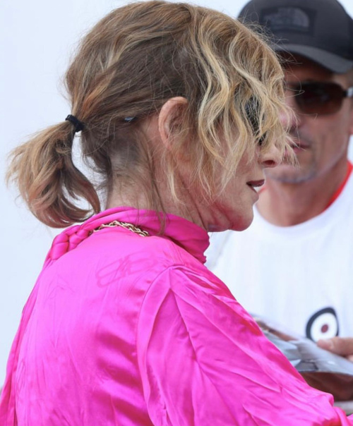 Isabelle Huppert qui est petite porte très mal la robe Balanciaga et que dire de la fameuse combinaison mettant bien en évidence une partie de l'anatomie féminine ! Comment peut-on porter ce genre de truc 😱! Et ce rose et noir qui me renvoient bien malgré moi à une partie de l'anatomie féminine 😄 !