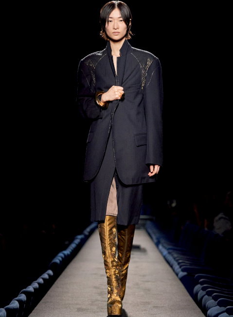 Ohlala ce look Dries Van Noten avec le manteau gris/doré et les bottes hautes 😍😍 il m'hypnotise !!! J'aurais presque envie de donner des grands coups de pinceaux sur mon pardessus mais bon je doute que le résultat soit si elegant😂.