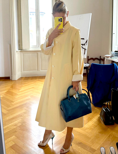 Sous ton manteau monter haut tes bottes tu feras (Isabel Marant, Dries Van Noten). Dans tes boots western ton jean droit un brin large à demi tu glisseras (Isabel Marant). Caban et sweat à capuche gris tu superposeras (Miu Miu). Aux leggings à nouveau leur chance tu laisseras (ou pas) (Miu Miu). Le twin-set tu réhabiliteras (Miu Miu). À l'instar de Pamela Anderson, la tendance "Quiet Luxury" à adopter tu te forceras (voir ici). Des inspirations pour tes prochains mix and match de couleurs au sein de l'oeuvre de Nicolas de Staël chercher tu iras (voir ici). Tes pantalons de costume taille basse tu porteras (Miu Miu). Sous tes robes bustier un pull tu glisseras (Louis Vuitton). Avec des bottes laissant le mollet libre tes micro jupes tu associeras (Anna Borisovna). À découper tes jeans tu penseras (ou pas) (Caroline Blomst). Tes robes pull taille haute tu ceintureras (Louis Vuitton). Robe girly et baskets tu mixeras (Cecilie Bahnsen). Via une paire de bottes motardes tes jupes les plus austères tu twisteras (Chloé, Sandro). Du duo chemise/ample jupe midi tu abuseras (Dior). À considérer le Bon Marché comme un théâtre à part entière tu apprendras (voir ici). Costume bleu nuit et reflets mordorés tu marieras (Dries Van Noten). Aux imprimés des détails en 3D tu préféreras (Prada). À dénicher une jupe midi à godets toute ton énergie tu mettras (Prada). L'édredon du lit de la chambre d'ami en mini jupe tu transformeras (Prada). Dans un blazer marron tu investiras (Prada, Margaret Howell, Sessun). Long pardessus, jean large et escarpins à bouts pointus ensemble tu porteras (Nili Lotan). À ta belle mère versaillaise un cours de drapage d'écharpe tu demanderas (Saint Laurent). Le blouson en cuir de ton oncle ex-quarterback tu subtiliseras (Saint Laurent). Le veston à même la peau tu porteras (Stella McCartney). Au contact d'un blouson sporty les sequins tu apaiseras (Maje). Ballerines et chaussettes épaisses de marier tu éviteras (Maje). À te lover dans des looks soporifiques tu t'amuseras (Lison Sebellin). Le mariage d'éléments relativement premier degré tu boycotteras (Maje). En mode subtil le cropped tu consommeras (Sandro). Une dégaine oscillant entre celle de Margot Tenenbaum et celle du personnage de Marla dans Fight Club à tes bottes motardes tu insuffleras (Sandro). Sur la potentielle romance entre Kylie Jenner et Timothée Chalamet autour d'une margarita avec tes amies tu gossiperas (voir ici). Au jean slim à nouveau ton coeur tu ouvriras (ou pas) (Céline). Micro longueurs et boots plates masculines tu associeras (Céline, Céline). Blanc, café au lait et lilas ultra dilué tu marieras (Ami). Au contact d'un marron très clair une nouvelle désirabilité au bleu ciel tu offriras (Ami). Via un zeste de transparence tes tenues les plus couvrantes à aérer tu penseras (Ami). Dans l'espoir de retrouver un teint de pêche après deux mois d'exposition au soleil au protocole Hydrafacial x La Prairie tu t'adonneras (voir ici). En lisant le dernier livre de Yann Moix sur la notion de journal intime tu t'interrogeras (voir ici). Aux Crocs dopées aux marshmallows tu ne succomberas pas (voir ici). Ton blazer chez Mister k. tu réserveras (voir ici). Jaune pâle et bleu canard tu mixeras (Jenny Walton). De l'interdiction tacite des Airbnb à New York tu te réjouiras (voir ici). Au nouveau "beauty gadget" du docteur Dennis Gross sa chance tu laisseras (voir ici). Afin de pouvoir faire de Ralph Lauren ta marque de prédilection à ouvrir un compte OnlyFans tu penseras (ou pas) (voir ici). Sur les blazers eighties de ta friperie préférée un regard neuf tu porteras (Saint Laurent). Un blouson teddy tu t'offriras (voir ici). La première collection Gucci de Sabato De Sarno avec impatience tu attendras (ou pas). Pour la réincarnation de Carolyn Bessette-Kennedy tu te prendras (voir ici).