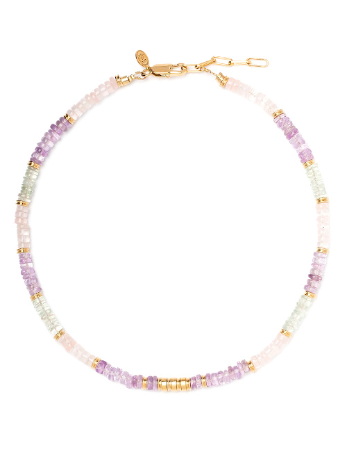 Empruntant aux colliers de surfeurs leurs accumulations de perles plates et les déclinant dans des pierres aussi lumineuses que gorgées d'émotion, les créations de la griffe Amapietra me touchent par leur simplicité baignée d'intensité. J'aime d'ailleurs tant leurs jeux de teintes, de textures et de transparences que lorsque je porte l'un des colliers de Maud Casse (la créatrice), il n'est pas rare qu'il reste à mon cou pendant plusieurs semaines. Cet automne, je rêve du modèle Hestia, tant pour son éclat empreint de douceur que pour ses potentielles vertus…