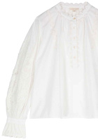 L'idée est ici d'aérer la silhouette grâce au duo escarpins portés pieds nus/longueur 7/8. Laisser dépasser le col et les poignets de la blouse sous le pull. Nouer ses cheveux en un chignon bas porté sur le côté. Remplacer si besoin la veste par un blouson en cuir noir.