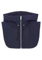 Porter la capuche amovible au-dessus du pull. Faire dépasser le col et le bas du tee-shirt sous le pull. Réchauffer l'ensemble au contact d'un caban bleu marine ou d'un pardessus caramel.