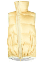 Faire dépasser la chemise du pull. Glisser le jean dans les bottes. Opter de préférence pour un chignon haut. La doudoune pourra être remplacée par une doudoune sans manches vert lichen ou orange pâle.