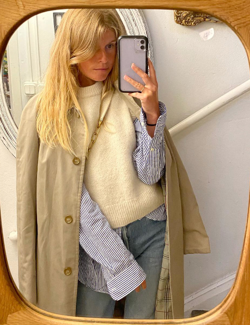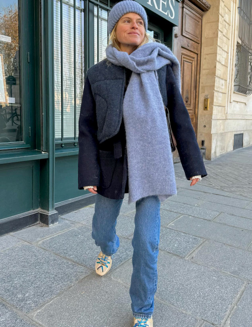 Mixer les textures afin de dérider un camaïeu de teintes classiques (voir ici et là). Faire ressortir le bleu ciel en le mixant à du blanc (voir ici). Densifier la dégaine d'un look blanc/beige en lui ajoutant une veste en shearling (voir ici). Marier top ultra moulant et pantalon large (voir ici et là). Porter ses cols roulés déroulés (voir ici). Dénicher des classiques dotés d'un léger twist conceptuel (voir ici et là). Se tricoter un bonnet avec un zeste de fluo (voir ici). Marier marron, rouge coquelicot et jean à peine délavé (voir ici). Ne pas hésiter à réchauffer ses sandales au contact d'une douillette paire de chaussettes (voir ici). Associer Mac, pull blanc cassé sans manches et chemise à rayures bleues verticales (voir ici). Déjouer le premier degré d'un jupon en coton léger en lui mariant un débardeur casual (voir ici). Dénicher un tee-shirt sporty rétro associant blanc et marron cappuccino (voir ici). Afin de donner du relief à ses tenues de sport, préférer les cabas en paille tressée aux modèles en tissu (voir ici). Dépareiller ses bikinis en jouant sur l'opposition échancré/couvrant (voir ici). Opter pour de larges encolures en V pouvant facilement dénuder une épaule (voir ici). Mixer tenue boyish et panier en osier tressé (voir ici). Sophistiquer le trio Boston/jean large/pull sans manches au contact d'une paire de boucles d'oreilles en perles sauvages (voir ici). Twister un look androgyne en portant un petit sac rétro chic (voir ici). Laisser une nouvelle chance à la cagoule (voir ici). Porter ses manteaux les plus sobres avec un maquillage frais et subtilement girly (voir ici). Doper ses tenues de sport d'hiver en jouant sur les mix de volumes, de textures et de teintes (voir ici). Mettre en valeur son cou en associant encolure ronde à peine large et chapeau volumineux (voir ici). Mixer longue parka kaki et blouse romantique (voir ici). Glisser un pull douillet rayé sous un gilet en shearling un peu ample (voir ici). Porter ses combinaisons de pompiste avec élégance et simplicité (voir ici). En vacances, faire du trio chapeau cloche en paille/ample chemise à rayures abricot/Boston taupe l'un de ses looks de prédilection (voir ici et là). Marier blazer bleu marine ultra classique et cabas en cuir tressé (voir ici). User et abuser du trio blazer bleu marine/débardeur blanc/bijoux dorés (voir ici).
