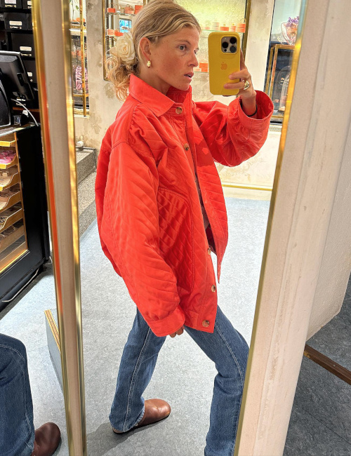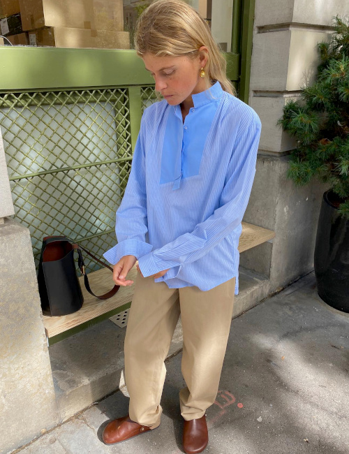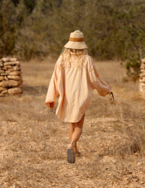 j'adore la chemise ample à rayures orange et le chapeau en paille. Je vais copier ce duo pour cet été. Merci pour les references de ses marques préférées : j'ai fait de belles découvertes !