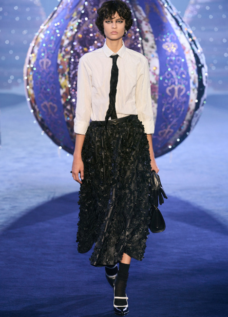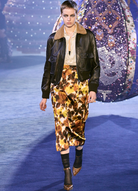 Je suis très sensible,comme toujours, au travail de Dries Van Noten, à l'association blouson aviateur et jupe longue de Dior et au cardigan Miu Miu. Voilà mon tiercé gagnant.