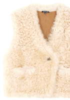 Glisser un tee-shirt blanc col rond sous le gilet. Opter pour des chaussettes sable mi-hautes. Ouvrir le gilet légèrement sur le haut et sur le bas. Faire une queue basse sur le côté. On pourra éventuellement remplacer le gilet par .