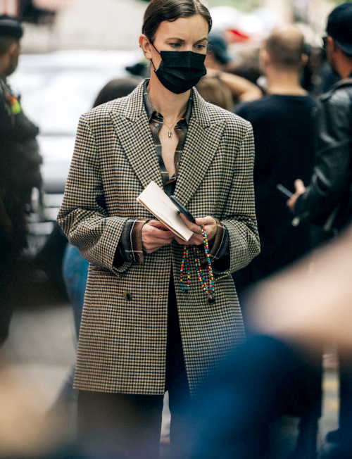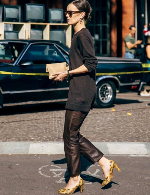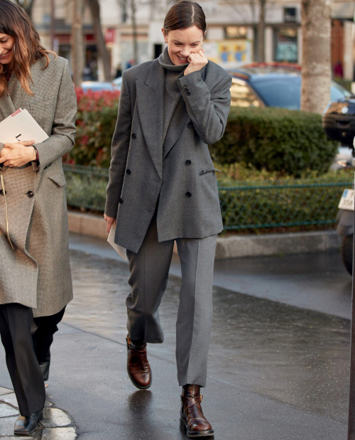 Dégager le cou et le visage afin d'alléger les looks les plus couvrants (voir ici et là). Marier runnings et pantalon de costume (voir ici). Chiciser le trio blazer noir/tee-shirt blanc/jean large via une coiffure sophistiquée (voir ici). Télescoper cuir grainé et velours ras (voir ici). Marier vichy et carreau bûcheron (voir ici). Porter ses pantalons costumes en mode 7/8 afin de pouvoir les mixer à une belle paire de bottines masculines (voir ici et là). Marier noir, fauve et gris (voir ici). Twister une tenue de montagne en misant sur un camaïeu de teintes boosté par un mix and match de textures (voir ici). Associer ample trench ceinturé taille haute et jean boyfriend roulotté sur la cheville (voir ici). Dès le printemps, troquer ses baskets contre une paire de sandales minimalistes (voir ici). Renouveler la dégaine du total look jean en le réchauffant au creux d'un blazer vichy (voir ici). Investir dans un blazer préformé aux hanches qui affûtera la dégaine de n'importe quel jean (voir ici). Faire de la longue liquette l'un de ses basiques de prédilection (voir ici et là). Traiter le pantalon en cuir sur une note urbaine/sportswear (voir ici).