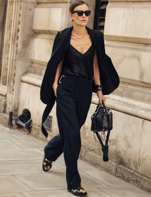 Penser à glisser un sweat sous ses vestes de costume (voir ici). Dérider une sage tenue monochrome en chaussant une paire d'escarpins audacieux (voir ici). Acérer le style nonchalant du trio pull oversize/jean/baskets en optant pour une coiffure sage - voire stricte - et une belle paire de boucles d'oreilles (voir ici). En été, éviter au duo sandales/jean 7/8 de sombrer dans le no look en remplaçant le traditionnel tee-shirt blanc contre une blouse manches courtes de caractère (voir ici). Accessoiriser un total look noir androgyne comme la plus chic des petites robes noires (voir ici). Dénicher la parfaite combi utilitaire (voir ici). Associer coiffure dégageant le visage, pantalon large et longue robe droite sans manches (voir ici). Déjouer l'effet "engonçant" du pull en grosse maille col roulé en le choisissant sans manches (voir ici). Opter pour des pièces d'extérieur impactantes et bien coupées susceptibles de rehausser les looks les plus casuals (voir ici). Pimenter une tenue androgyne noir et blanc en optant pour une volumineuse paire de boucles argentées (voir ici). Associer fauve et gris très clair (voir ici). Pimenter le trio blazer/pull col rond/jean droit via une paire de boots western revisitée (voir ici). Relever le col de ses trenchs (voir ici). Porter ses chemises oversized basculées sur l'arrière (voir ici).