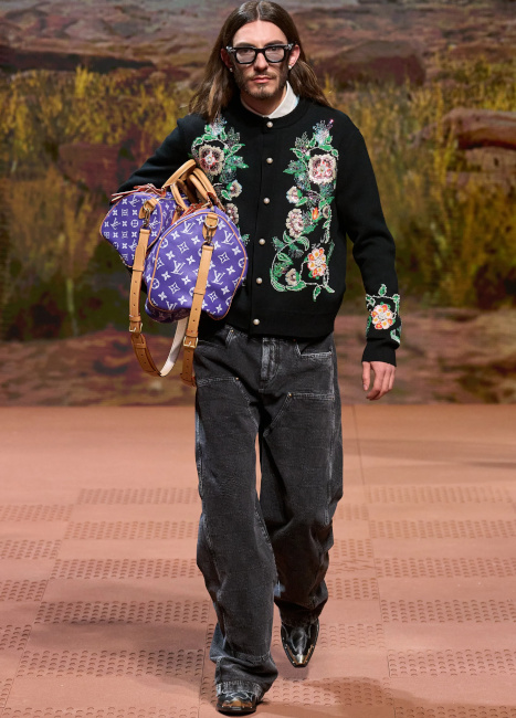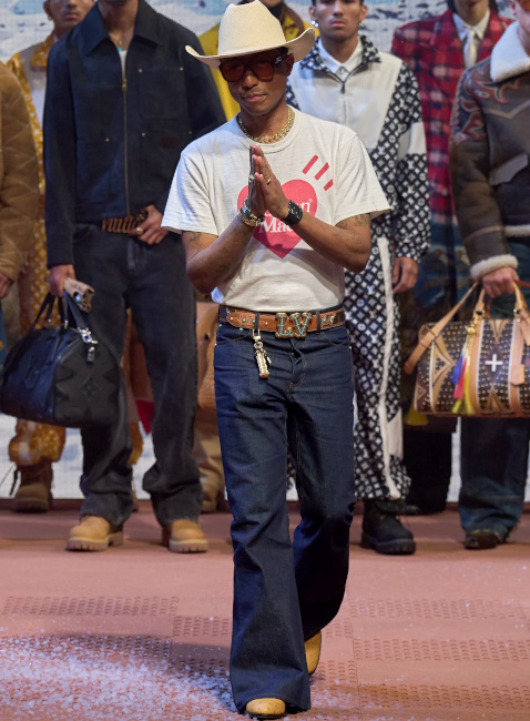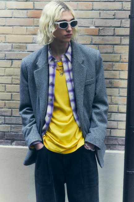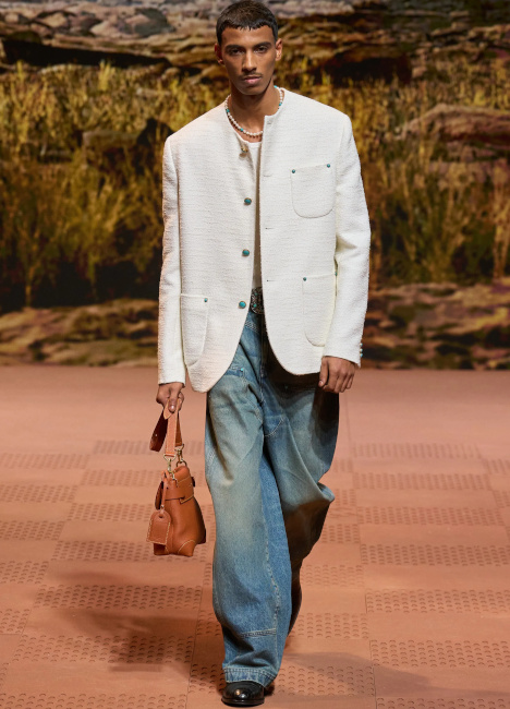 Le look jean flare/veste sans col est magnifique ! Je trouve que la mode masculine se tourne de plus en plus vers le gender fluid d'où certaines tenues , pas montrées ici, déstabilisantes (les ballerines !)!