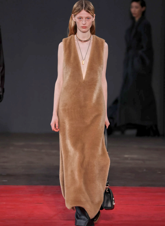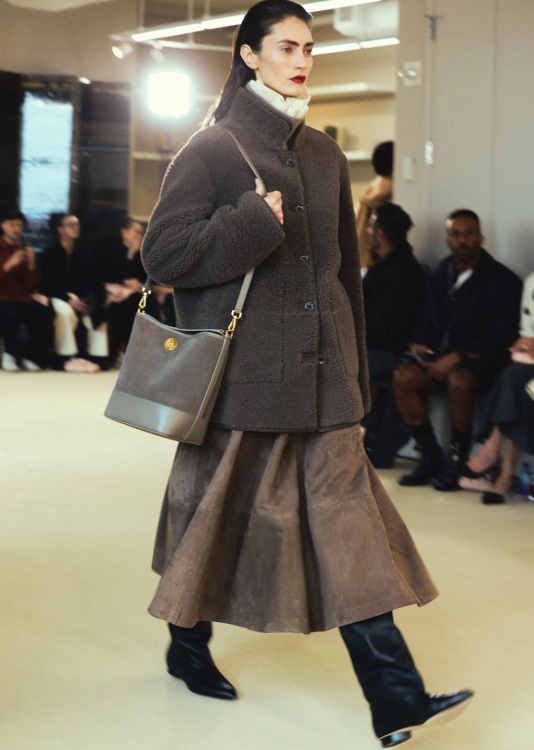 Marron, caramel et jaune pâle font toujours bon ménage (Coach). Traiter son sac à main comme un sac à dos à part entière en lui suspendant les choses ne pouvant y rentrer semble avoir le vent en poupe (Coach). Tailler ses robes du soir dans les pelages des ours en peluche délaissés par ses enfants devenus trop grands pourrait devenir une bonne manière de les recycler (ou pas) (Gabriela Hearst). Difficile de savoir si l'on adore ou non les pull-overs "camisole de force" ultra douillets de Jason Wu… (voir ici et là) Le port de la broche se libère désormais des contraintes traditionnelles (Jason Wu). Après Marc Jacobs et Demna Gvasalia, c'est aujourd'hui au tour de la griffe Khaite de jouer avec l'esthétique "sac poubelle"… Bleu nuit et orange sont décidément faits pour vivre ensemble (Khaite). Le duo marcel/jupe posée sur les hanches reste une valeur sûre (Michael Kors). Réveiller un camaïeu de teintes ultra sages via un télescopage de textures audacieux n'est certes pas nouveau, mais reste toujours aussi efficace (Michael Kors). À l'instar de Coach, Michael Kors échoue lui aussi à reproduire la magie du duo sweat à capuche/blazer Miu Miu.