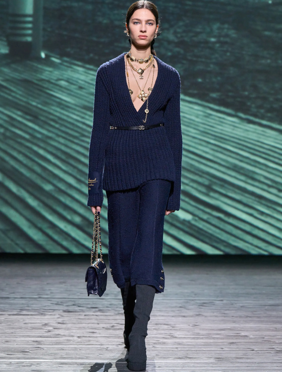 Les généreux lainages donnent déjà envie chez Stella McCartney et Sacai. Je suis une grande admiratrice de la maison Chanel. Il y a de la douceur, les tweeds étaient somptueux, et élégants. Virginie Viard fait le job. Les longues bottes en daim à bout noir, c'est vraiment l'esprit Chanel. Vuitton, c'était fun, futuriste, vraiment bien et assez accessible.