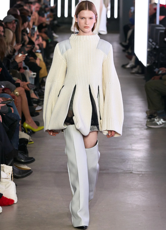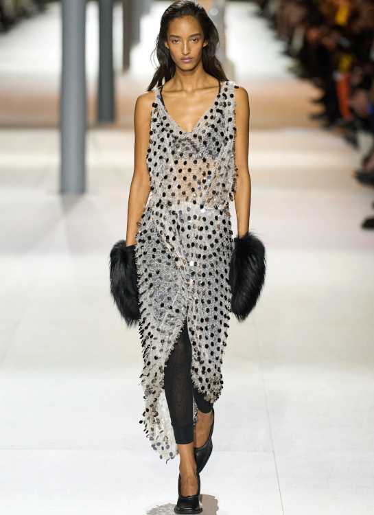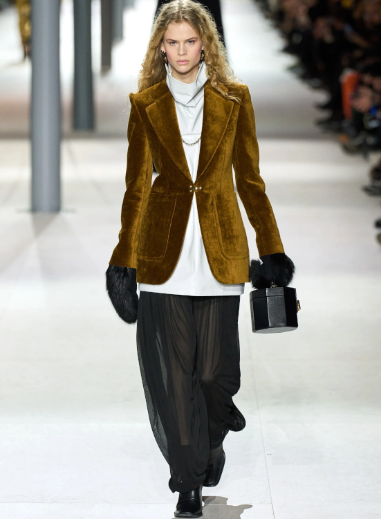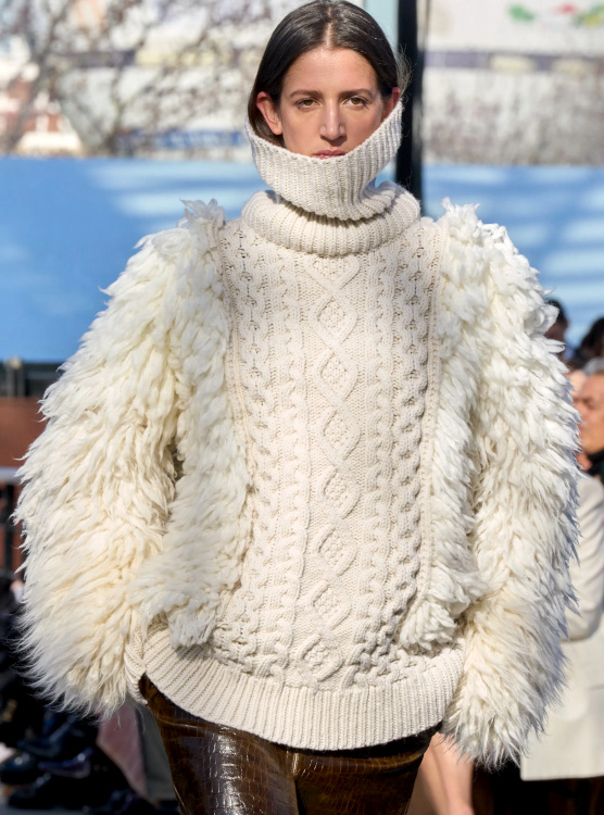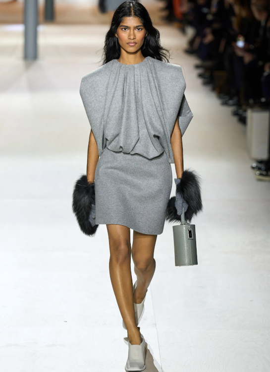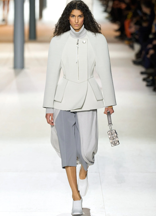 L'opulence laineuse ringardise la douceur de la fourrure véritable (Stella McCartney, Sacai). La patte de serrage du col des trenchs devient un détail incontournable (Stella McCartney). Le gimmick du collant remontant haut sous la taille de la jupe continue malheureusement de hanter les collections (Stella McCartney, Miu Miu). Comme souvent chez Louis Vuitton, Nicolas Ghesquière livre mille et une idées à la pertinence inégale. Il est vrai que si le duo déshabillé scintillant/leggings offre enfin à ces derniers une légitimité fashion, si le drapage de laine feutrée brille par sa modernité élégante, si les coupes minimalistes subliment les étoffes surchargées et si blazers et vestes feront des merveilles une fois portés avec un simple jean, difficile d'être convaincu par les trompe-l'oeil célébrant l'ADN de la griffe, par l'asymétrie bancale des robes de cocktail ou encore par les fusions SF/sportswear un brin trop froides.