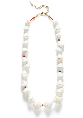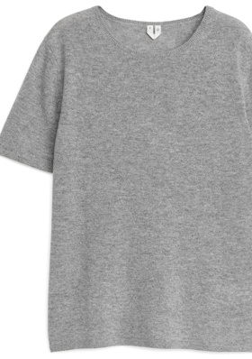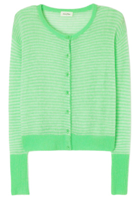 Porter en twin-set le cardigan et le top en maille Glisser à l'envi un tee-shirt blanc col rond sous le top gris Opter pour une queue de cheval haute Glisser si on le désire une paire de hautes et fines chaussettes vert d'eau rayées dans les sandales (à faire froncer sur le bas de la cheville) Ne pas remplacer les coquillages par des perles (la tenue serait alors trop premier degré)