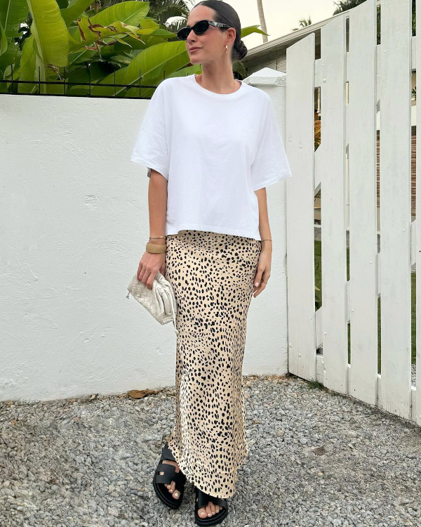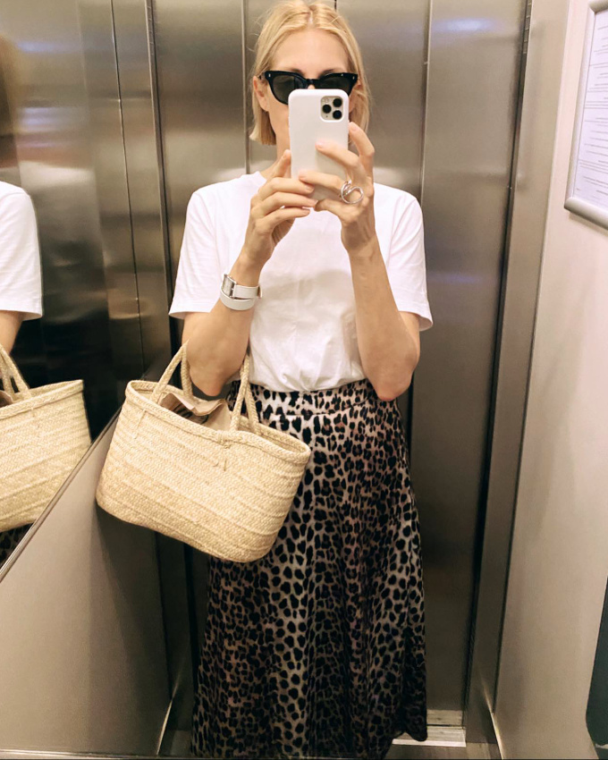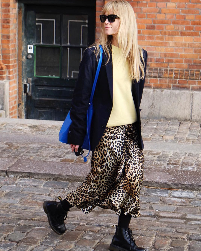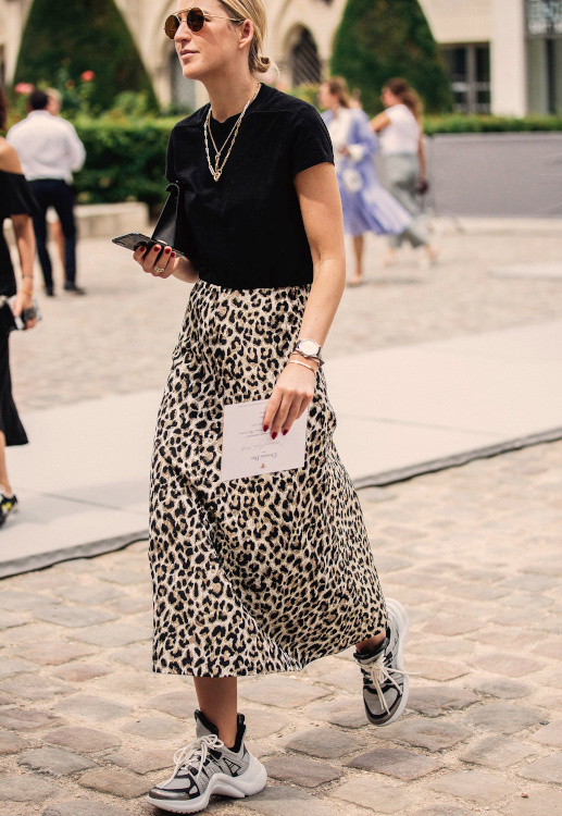L'association que j'aime le plus est la classique: jupe léopard fluide+ marinière et veste militaire kaki. Avec des sandales, ou des baskets simples, c'est parfait.