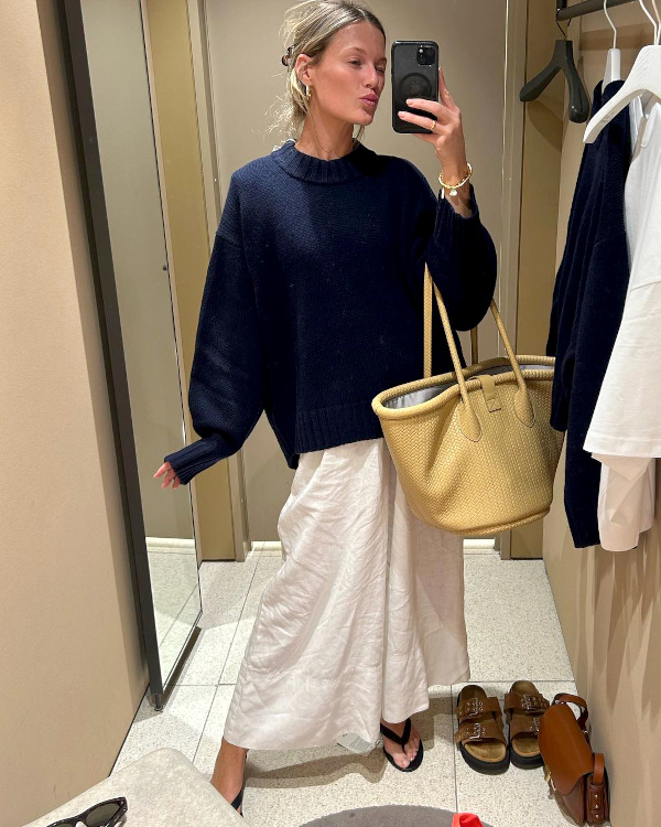 Investir dans d'amples pulls colorés et mousseux qui permettront de doper n'importe quel jean (on peut également se les tricoter soi-même ou se les faire tricoter par une bonne âme) (voir ici, ici et là). Marier rouge orangé et rayures pyjama bleues (voir ici). Garder à l'esprit que les sobres tops en jean sont de bonnes alternatives printanières à la chemise en denim (voir ici). Penser à utiliser en touches les couleurs fluo afin de réveiller des teintes sages telles que le gris (voir ici). Oser miser sur un confort absolu en mixant boots fourrées et pull douillet esprit irlandais (voir ici). Mixer bleu marine, imprimé léopard et jaune acide (voir ici). Injecter une tonalité "country club" à ses pantalons en seersucker en les mariant à un blazer bleu marine et à une casquette de baseball (voir ici). Déjouer le potentiel "sexy premier degré" des jupes en tricot en les associant à un tee-shirt large fantaisie (voir ici). Vivre de manière risquée en portant des chaussures qui conserveront une trace indélébile de chaque petit incident du quotidien (projection d'eau stagnante, éclaboussure de latte, giclée de moutarde ou encore rejet de lait caillé dû à la digestion difficile du nouveau-né de notre meilleure amie…) (voir ici). Réchauffer ses jupes blanches printanières via un douillet pull bleu marine (voir ici et là). Faire sortir la pince crocodile de la salle de bain (voir ici). Réhausser un total look jean via un foulard quelques tons au-dessus de celui de celui-ci (voir ici). Dynamiser le trio rayures matelas bleu/beige/marron par le biais d'une touche de jaune (voir ici). Télescoper extrême cosyness et escarpins sophistiqués (voir ici). User et abuser du tandem longue jupe léopard/tee-shirt blanc (voir ici). Dénicher des robes estivales nous donnant l'impression d'être une star de comédie romantique (voir ici). Mixer vert lichen, vert bouteille, bordeaux et blanc (voir ici). Collectionner les blousons et autres vestes fleurant bon le travail fait main (voir ici et là).