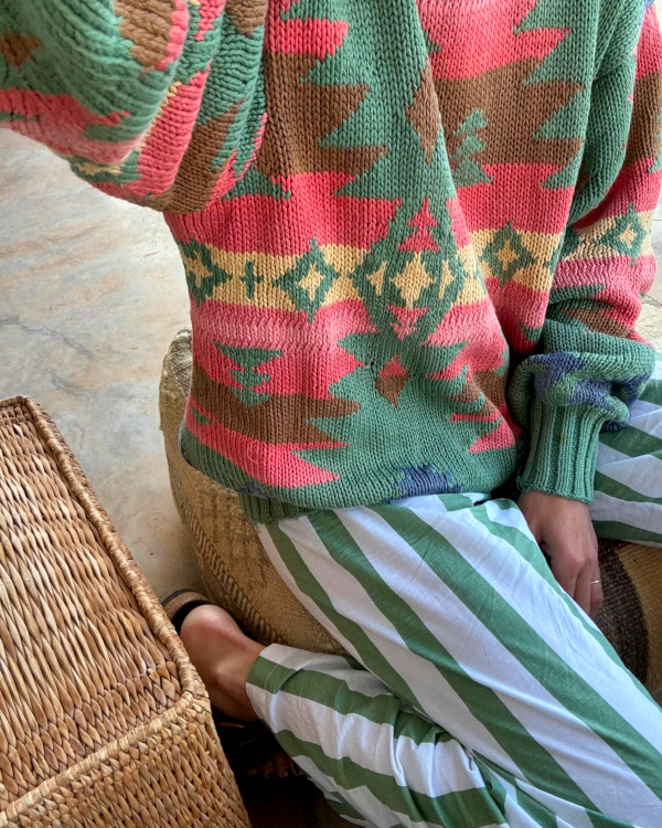 La robe vert froid folk avec imprimé aztèque lui va super bien!