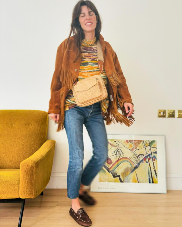 Associer du jean clair légèrement destroyed au trio vert forêt/beige/blanc (voir ici). Nouer ses paréos sur ses robes (voir ici). Faire d'une chemise de nuit vintage une robe à part entière (voir ici). Associer robe folk et sandales fines ultra épurées (voir ici). Marier veste en daim fauve, chemise glycine et jean bleu très clair (voir ici). Travailler ses looks olive avec du cuir caramel et du raphia tressé (voir ici). Toujours veiller à patiner ses télescopages d'imprimés en conservant une certaine harmonie de couleurs (voir ici). Acquérir une longue robe noire estivale et la porter aussi bien en ville que pour aller siroter un jus d'orange pressé en bord de plage (voir ici). Mixer veste en daim à franges et chaussures bateau en cuir marron (voir ici). Choisir ses pulls sans manches bien amples et les marier au duo jean large taille haute/sneakers (voir ici). Twister des tenues casual/preppy au contact de larges bracelets joncs (voir ici). Dénicher une surchemise en daim sable (voir ici). Apaiser une jupe droite léopard en la mariant à un sage pull unisexe col rond et à une saharienne en daim (voir ici). Réhausser la simplicité du tee-shirt blanc en portant des colliers faussement classiques (voir ici). Faire de la cagoule rouge un brin lâche son snood automnal (voir ici). Troquer son collier de perles nacrées pour une version dorée (voir ici). Superposer les surchemises à carreaux (voir ici).