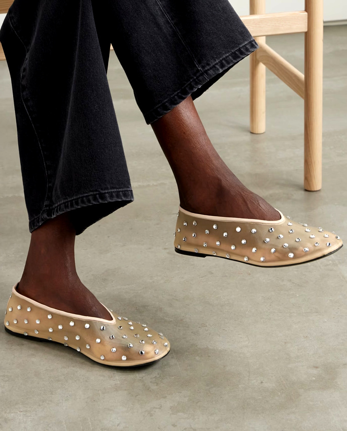 En ce qui me concerne, si je m'efforce d'accueillir les facéties de l'industrie fashion avec un zeste de recul, force est de constater que l'avènement des ballerines en mesh a récemment balayé mes aspirations de "bouddha wintourien". Après avoir été échaudée par le come-back des ballerines (notamment celles en cuir souple imaginées en 2017 par Phoebe Philo dont les fronces me rappellent celles d'un sac-poubelle), l'apparition de modèles évoquant au mieux un chapeau d'apiculteur pour orteils, au pire une étamine pour filtrer le beurre, a ainsi fortement ébranlé ma foi dans la bienveillance potentielle des stylistes (et plus particulièrement dans celle des soeurs Olsen à l'origine du phénomène).