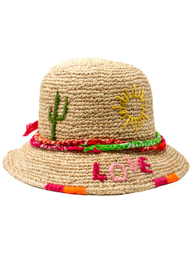 Porter la veste ouverte et les manches roulottées. Porter le sac à la main afin d'habiller le bas de la silhouette. Remplacer si besoin les sandales par une paire de baskets blanches. L'idée est ici de jouer avec les tonalités du collier, du chapeau et de la veste pour créer un camaïeu de couleurs.