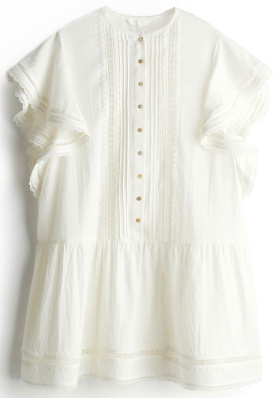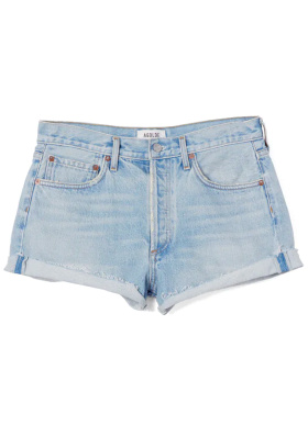Opter pour un chignon haut coiffé/décoiffé ou un carré court froissé. Roulotter légèrement les manches de la chemise. Remplacer si on le désire les sandales par un modèle plus massif. Troquer éventuellement le short du look par .