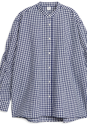 Glisser la chemise sur le devant du short. Déboutonner généreusement la chemise et roulotter légèrement ses manches. Nouer ses cheveux en un chignon bas.