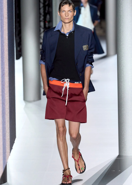 Contre un modèle en maille, ton short en jean tu troqueras (lglora). Le short de surf de ton frère tu piqueras (Miu Miu). Ton nouvel exhausteur de look de la cordelette d'escalade tu feras (Miu Miu). De traiter tes bas en head band tu envisageras (ou pas) (Prada). Les imprimés patchwork tu aduleras (Isabel Marant, Paolina). Maillot de bain une pièce sexy et short roots bien large tu associeras (Isabel Marant). Tes robes boutonnées sur le devant, en trench estival tu transformeras (Miu Miu). Robe blanche minimaliste et accumulation de bracelets joncs dorés tu mixeras (Bella Hadid). Des tops aux allures de robe lilliputienne tu porteras (ou pas) (Jacquemus). Sur de multiples cimaises tes talents de peintre s'exprimer tu laisseras (Jacquemus). Prune et rose tu marieras (JW Anderson). Tes pulls d'été sur une tonalité exotique tu traiteras (Alanui). Ton 3e oeil à garder ouvert tu veilleras (Acne Studios). Au revival de la tendance boho tu souscriras (Chloé). Jaune et rose saumoné tu marieras (Stella McCartney). À recevoir simplement tes convives un point d'honneur tu mettras (Alessandra Grillo). De faire de l'ombre à Mireille Darc tu tenteras (Mija).