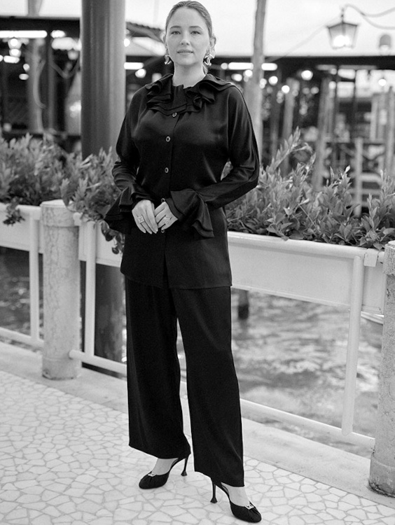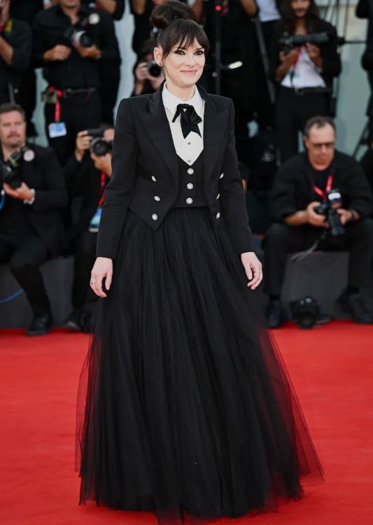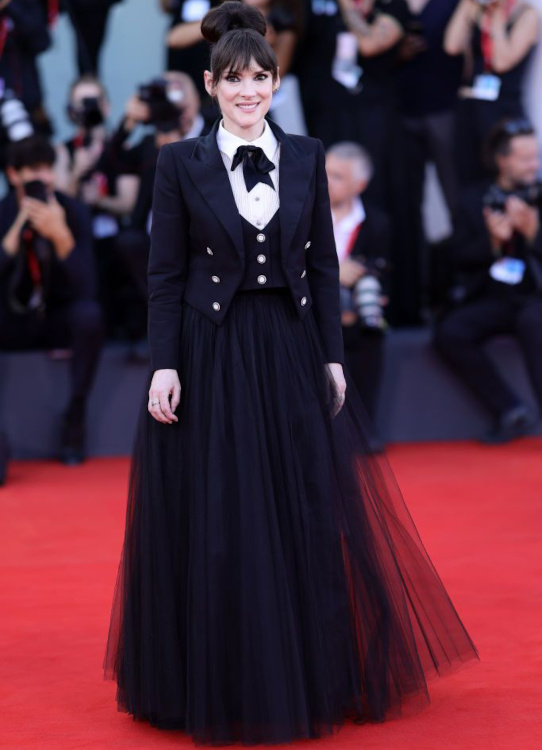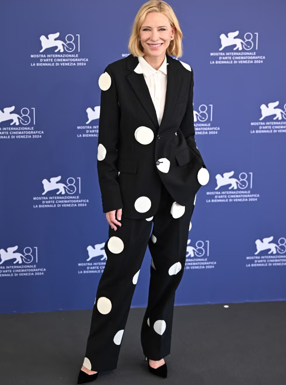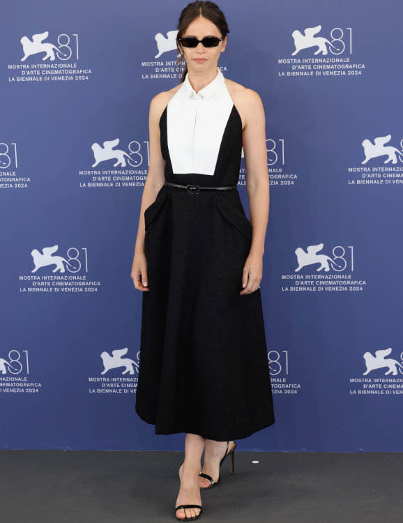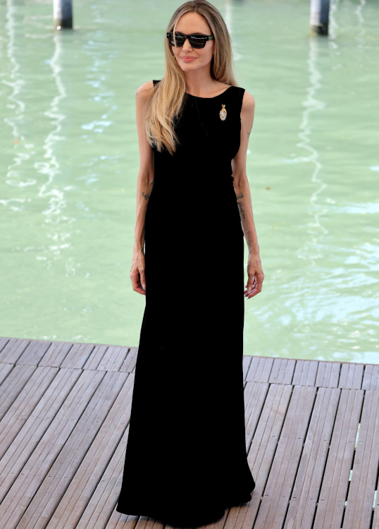 Les teintes marron ou bronze siéent bien mieux à Angelina Jolie que les nuances nude (Saint Laurent, Tom Ford). Le plaisir visible de Cate Blanchett à se réinventer subtilement à chaque apparition est aussi fascinant que jouissif à observer. L'actrice principale de la nouvelle série Apple TV "Disclaimer" s'amuse, tente et expérimente, le tout avec une espièglerie cérébrale qui nimbe chacune de ses tenues - aussi potentiellement clivantes soient-elles - d'une aura fédératrice (Louis Vuitton, Moschino, Armani Privé, Louis Vuitton, Armani Privé, Giorgio Armani). Si l'on avait encore des doutes sur le potentiel manque d'élégance de la fusion entre collants tatoués et slip d'épilation, Eva Herzigova a eu la bonté d'âme de les balayer… (voir ici) Il est dommage que les stylistes cantonnent Jenna Ortega aux looks évoquant de près ou de loin l'univers gothique (voir ici et là). Il en va de même pour sa consoeur Winona Ryder (voir ici et là). Le rouge à lèvres noir n'est toujours pas une bonne idée… (Clara Galle) Rien de tel qu'une sandale sans brides à la cheville pour éviter l'effet potentiellement tassant d'une longueur 7/8 (Felicity Jones en Dior). Accorder sa tenue avec celle de sa compagne (ou de son compagnon) semble être dans l'air du temps (voir ici et là). Sophie Wilde bouscule avec brio la dimension sagement classique de la robe noire (Loewe, 16Arlington). Angelina Jolie profita de l'occasion pour se glisser dans l'une des créations de sa griffe "Atelier Jolie". La robe "rideau "de Scarlett O'Hara continue d'inspirer les créateurs… (Stacy Martin en Louis Vuitton) Aussi tendances soient-elles, certaines nuances de vert ont bien du mal à apparaître flatteuses (Emily Ratajkowski en Gucci).