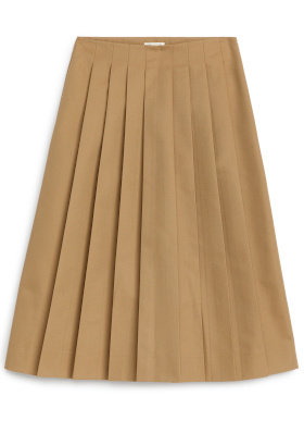 Égayer le camaïeu beige/marron via une touche de blanc en laissant dépasser le marcel sur la jupe. Ajouter éventuellement des hautes chaussettes moelleuses de la teinte de la veste. Laisser la veste à moitié dézippée. Porter l'écharpe de part et d'autre du cou sans la nouer.